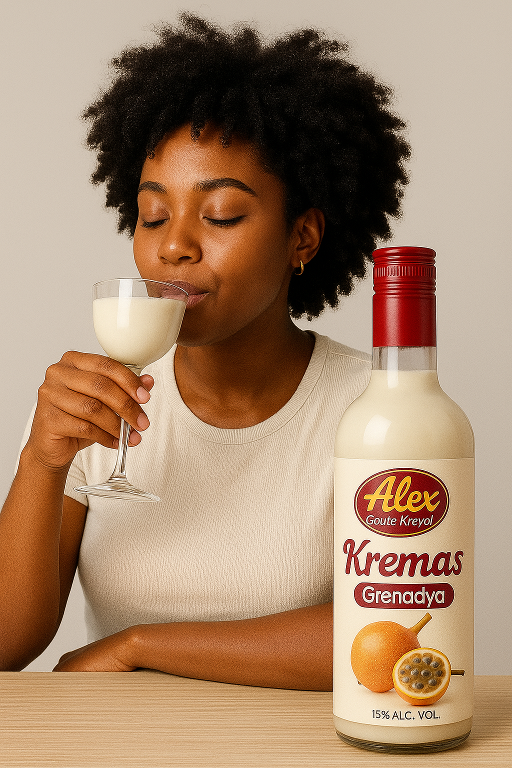 Indulge in the smooth, tropical delight of Kremas Grenadya, a luscious Haitian cream liqueur blending rich condensed milk, fragrant spices, rum, and the vibrant flavor of fresh passion fruit. Sweet, silky, and irresistibly aromatic, it’s perfect served chilled at celebrations or enjoyed as a decadent after-dinner treat. Taste the essence of Haitian tradition in every sip!